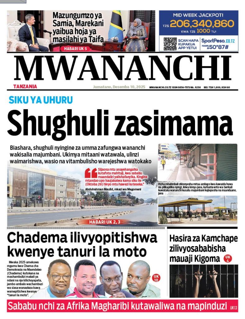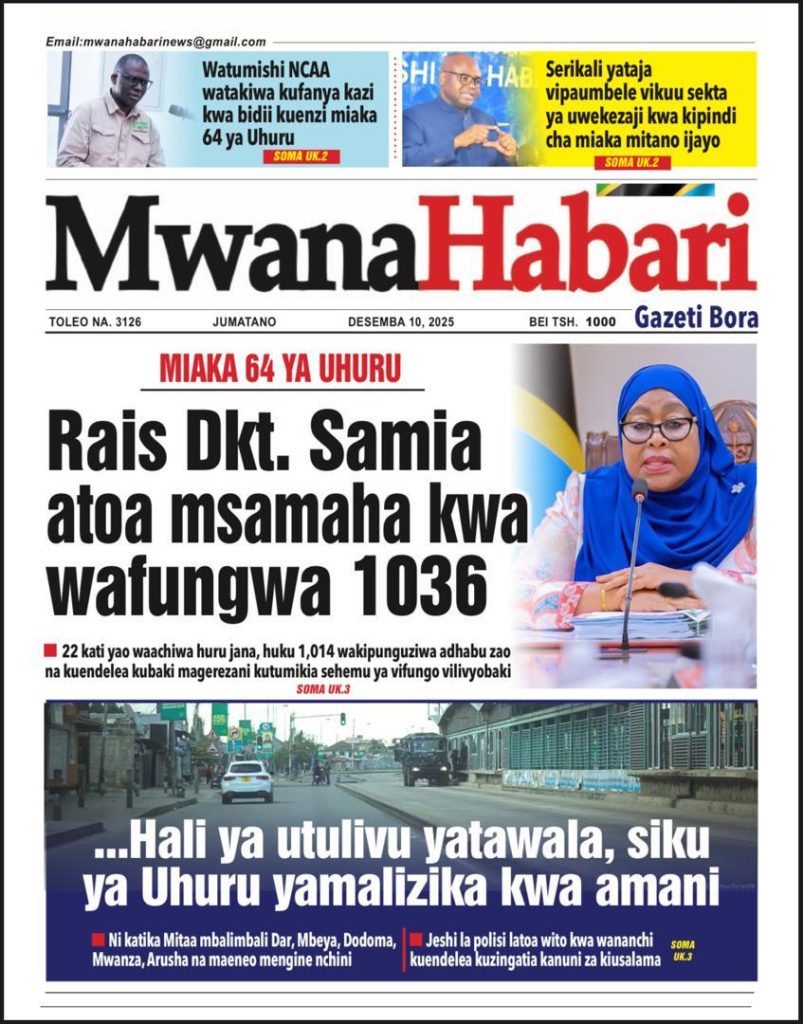 HABARI KUBWA KWENYE MAGAZETI YA LEO JUMATANO DESEMBA 10,2025