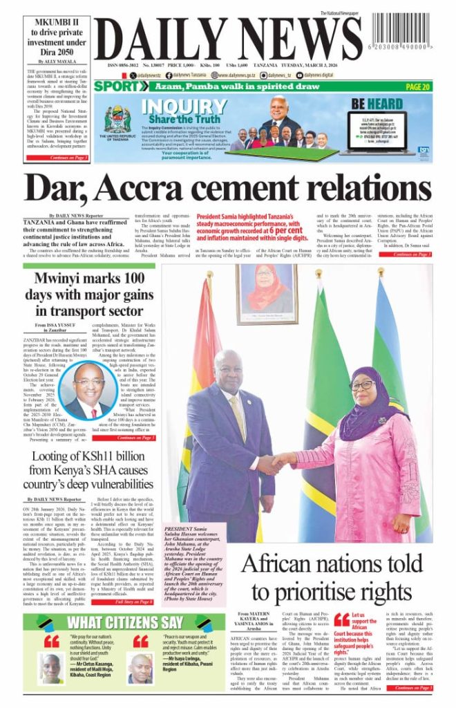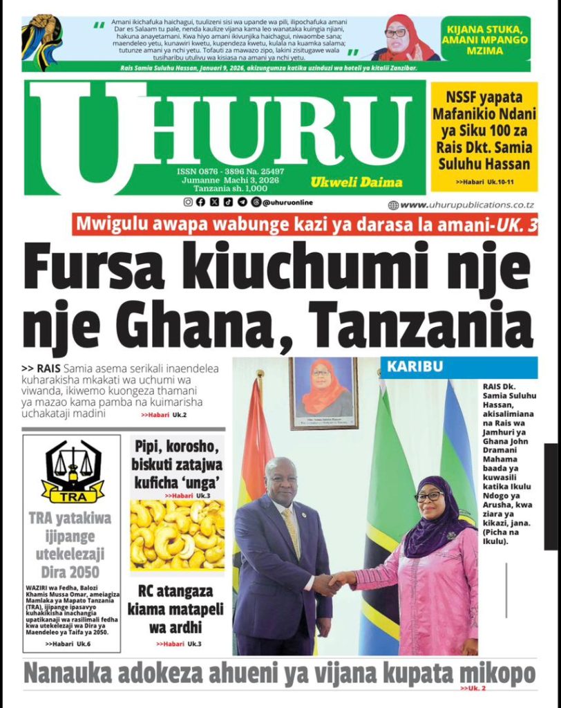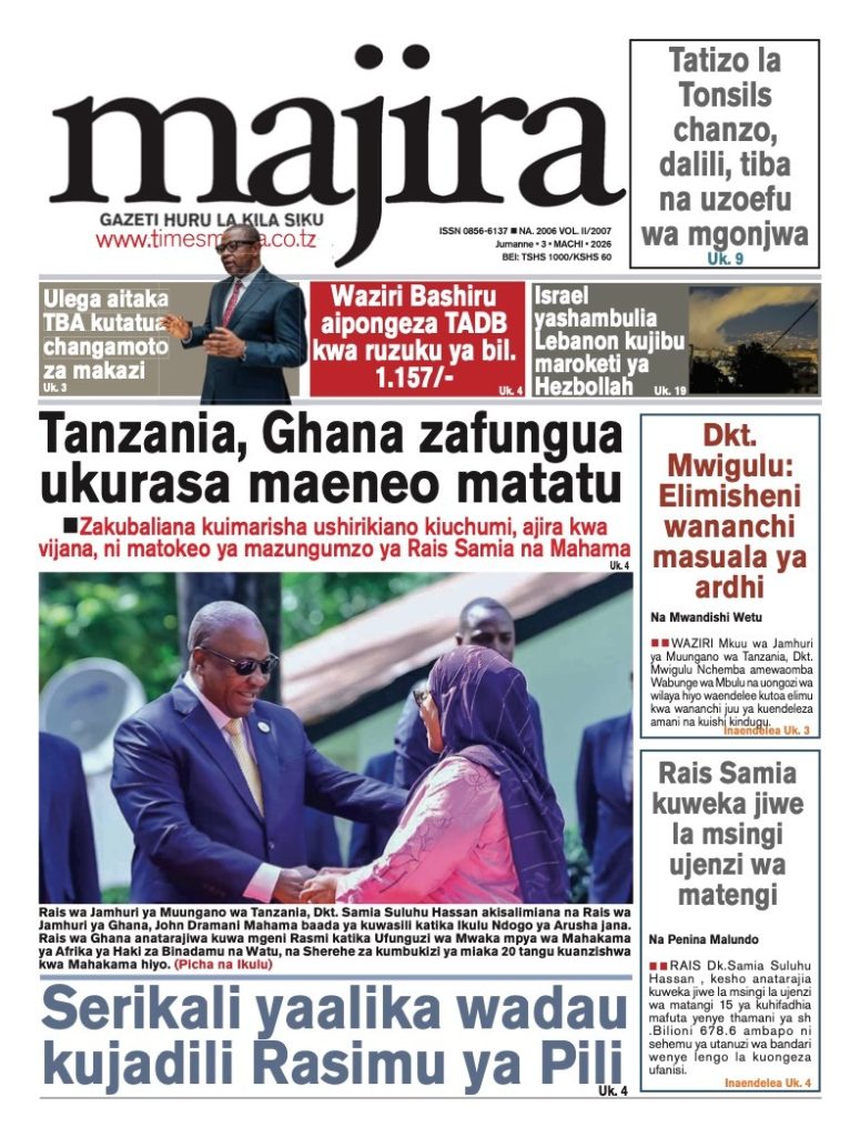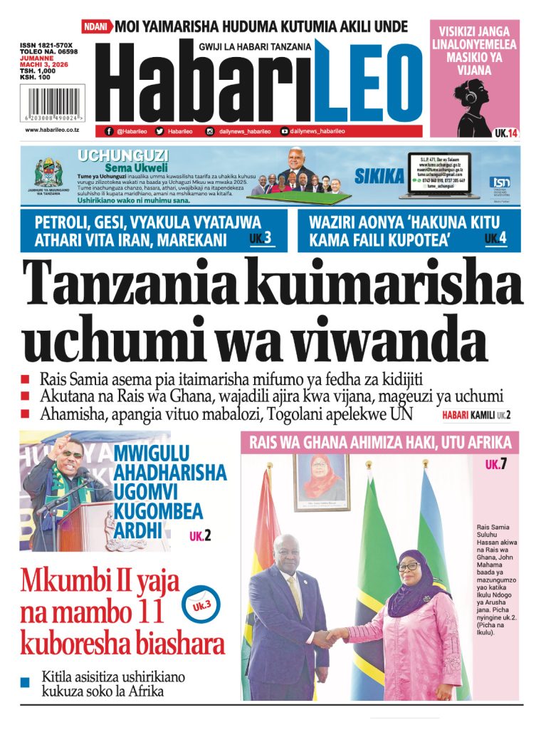 HABARI KUBWA KWENYE MAGAZETI YA LEO JUMANNE MACHI 3,2026